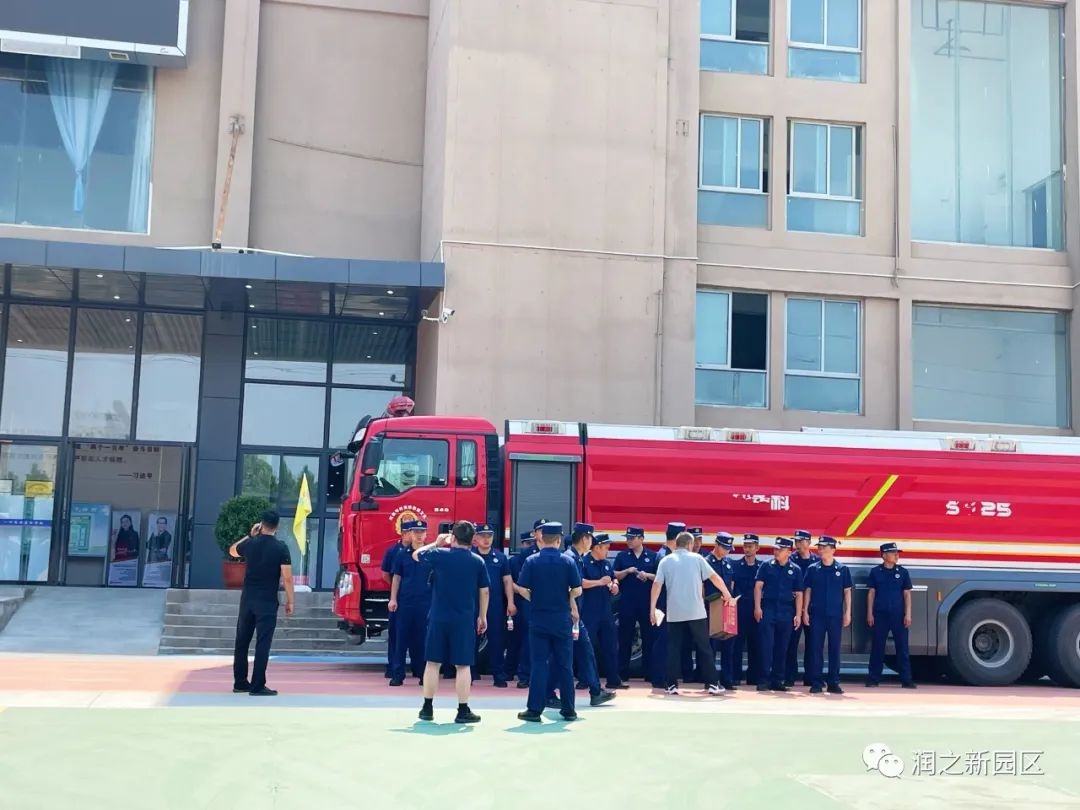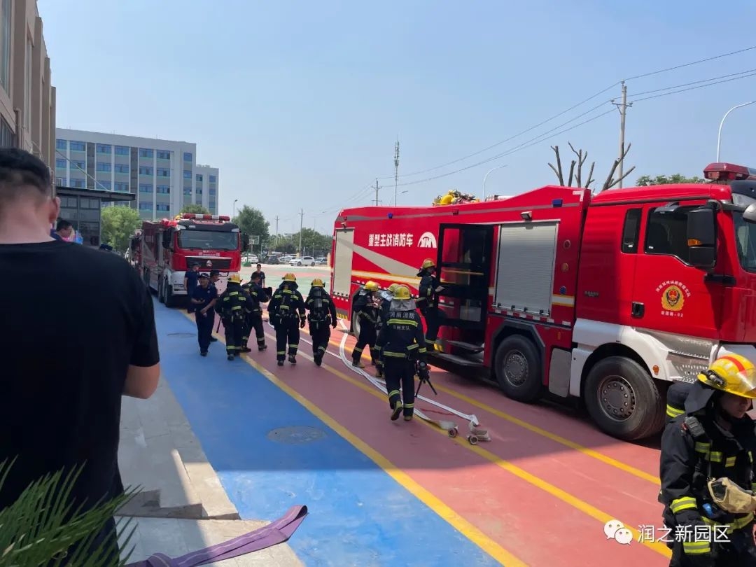 本次演练以润之新园区作为推演对象,共调集7台消防执勤车,40余名指战员参加。演练设置了常规消防安全检查、科普灭火器使用方法和作战指挥出警速度。